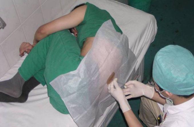 医生正在给病人做腰椎检查