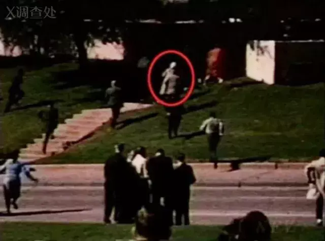 肯尼迪总统遇刺现场有一位神秘女子。她带着墨镜和头巾,与周围人群的穿着打扮都很不一样。