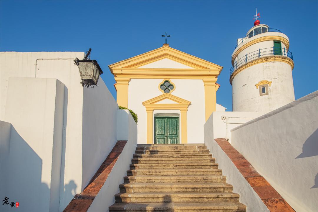 第三站,从东望洋街步行前往东望洋灯塔。这里有灯塔和炮台等元素,是东望洋山三大名胜古迹之一。如果你酒店居住附近且闲时间较多,早上和下午都会有许多当地人跑山做运动,可以跟着他们锻炼一会儿。灯塔的位置在东望洋山头,海拔较高,可以当做观景台俯览风景。灯塔为白色,带著黄色的线条点缀,拍照出来蛮有特色。作为澳门八景中的其中之一,这里也是游客必打卡的地方。