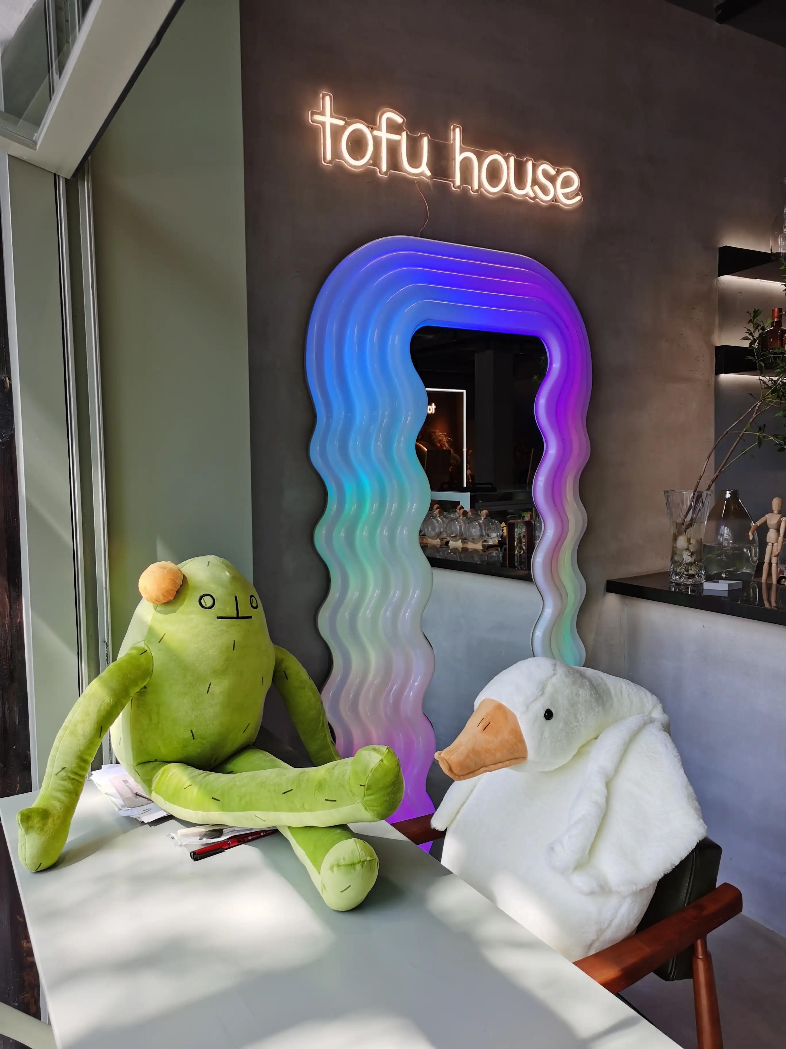周末无事,带夫人到西溪来了一个休闲游。西溪来过几次,这次没有选择进园,而是找了一家民宿小住一日。民宿曰清境西溪,是在携程上找的,价格不贵,平时就一百多,周末200。清境位于蒋村慢生活街区,位置很好,周边咖啡馆,餐饮店林立。它家还自带餐厅,名曰豆腐坊,其实就是咖啡轻食,和一些创意菜。环境不错,主打年轻人喜欢的调调,桌椅上,角落里满是各种公仔,吸引了不少年轻人前来打卡拍照。