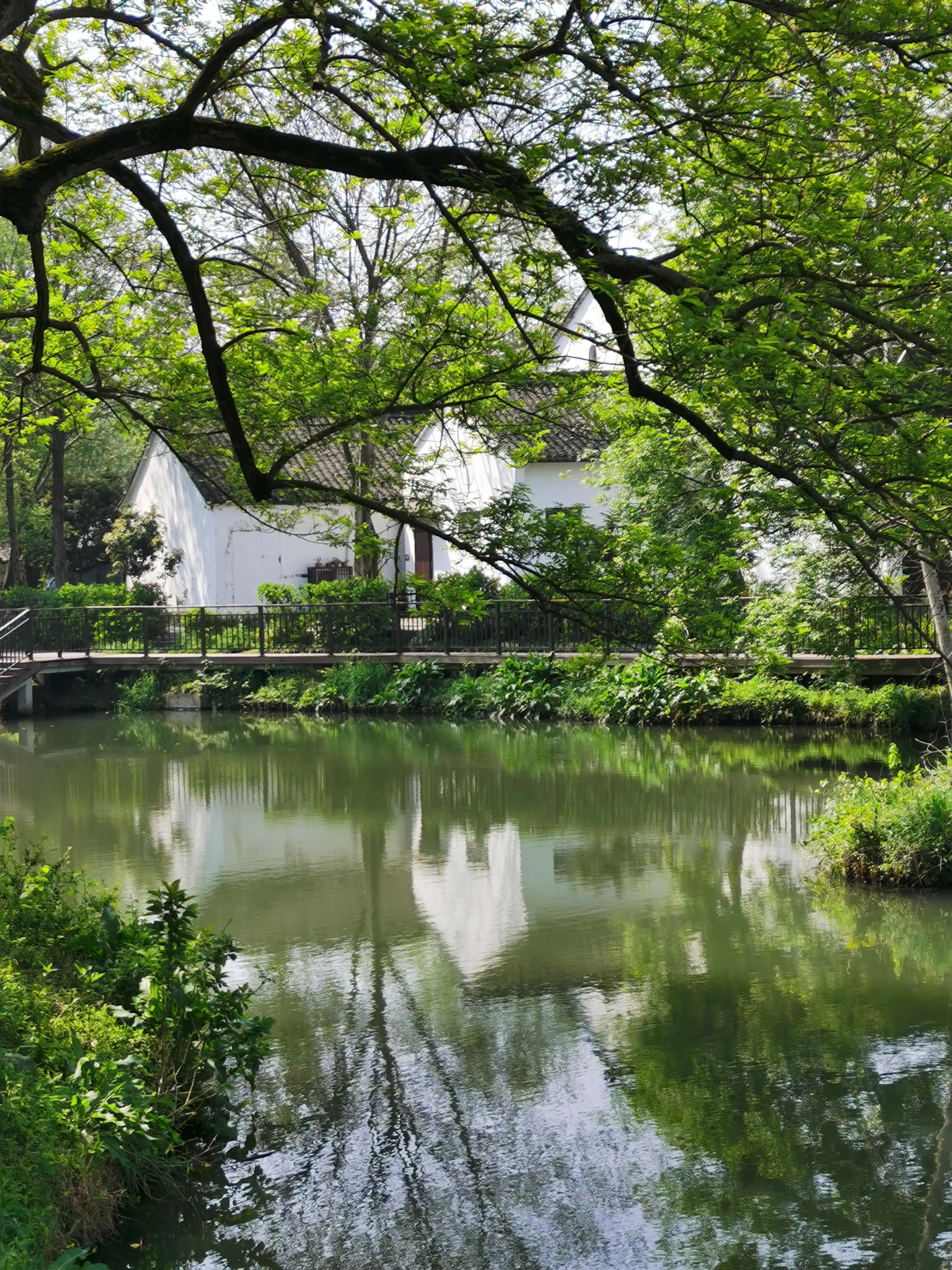 民宿房间不大,装修甚是简朴,倒还算干净。主要是位置好,这里其实已经是西溪景区了,只是还没有进大门。旁边有水浒作者施耐庵的纪念馆,据说他曾在这里生活过很多年。周边风景如画,小桥溪水池塘,绿树青瓦白墙,相映成趣。偶尔有水鸟在水面飞过,带起粼粼波纹。这里还有一个氦气球观景点,可以飞到高空,俯瞰西溪湿地全景。也许是周末的原因,不少学生到这里写生,人与景完美结合,又是一幅带着浓浓生活气息的画卷。