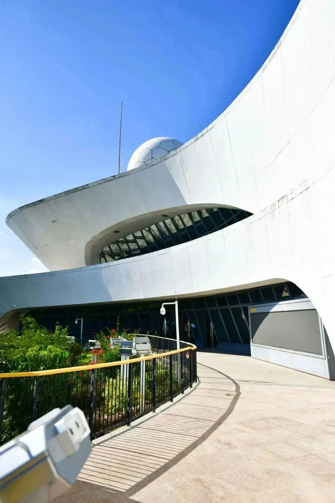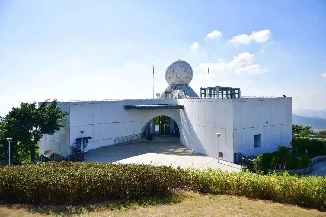 到了晚上,这里还是观星和欣赏城市夜景的好地方。天语舟气象公园顶端的白色圆球就是雷达。在夜空,它也仿佛一轮明月宛若一轮明月,与更远处的星光融合在一起。