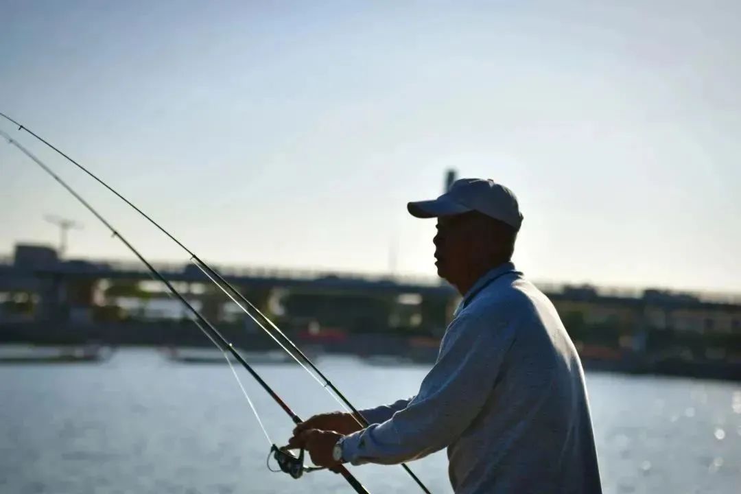 龙舟池畔的另一道风景线是在此垂钓的老人。