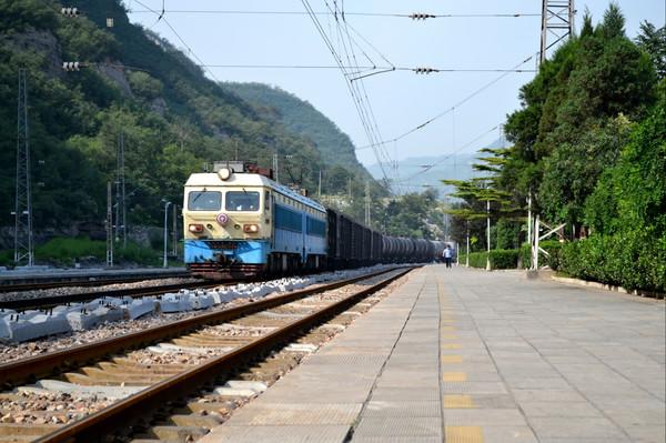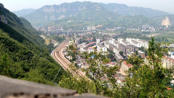 长城上俯视娘子关镇 ,可以看到火车站了