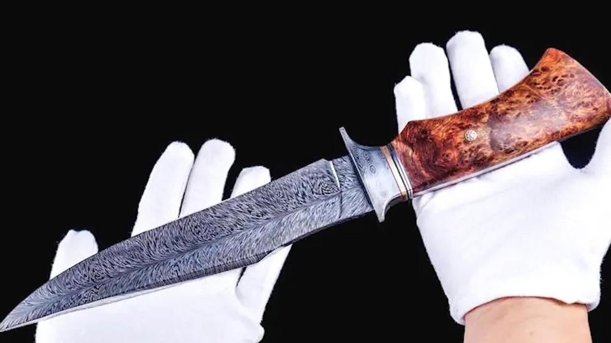 此刀原产于印度,后来在波斯、阿拉伯等地的战场上迅速流行了起来,最巅峰的冶炼技术和锻造方式被波斯匠人牢牢把持了。随着年代的推移,这种神兵利器又流向了蒙古、伊朗以及东方各国的王室贵族。目前流传下来最具代表性的就是产自伊朗的大马士革刀,通常为弯刀,最大的特征就是刀身布满各种花纹,有的像行云流水,有的如丝绸织纹。其中以印度产的最华美,因为他们主要采用古印度南部地区的乌兹钢锭来进行锻造,在高温折叠锻打的过程中,这种罕见的钢材会形成各种铸造型花纹,像是横放的十层云梯和翻卷的玛瑙,总之看起来就一个字:贵!