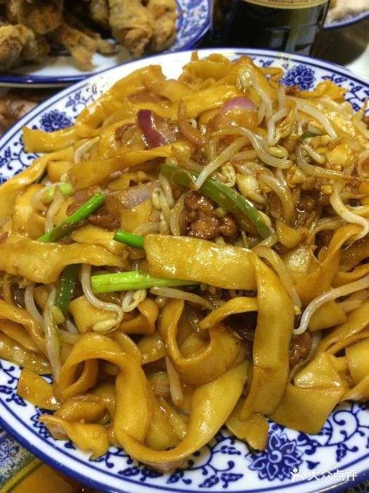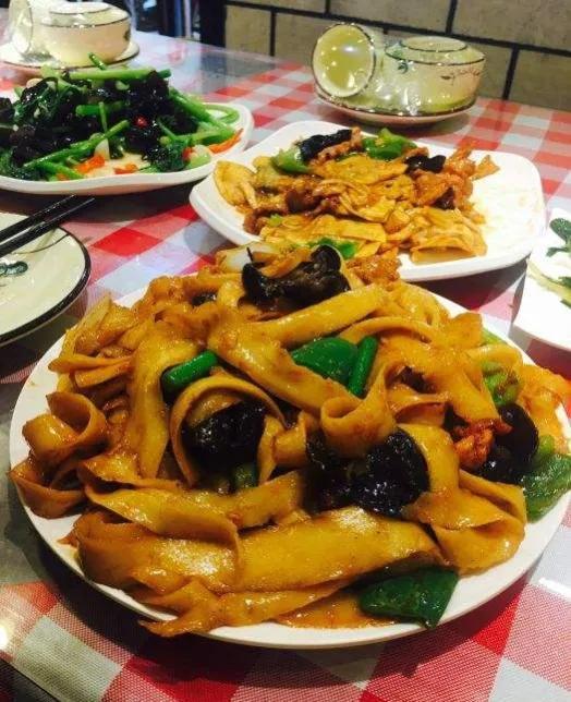 源自山西的过油肉炒刀削面,随着走西口流传到呼市,经过多年的传承和发展,成为一道具有呼市特色的传统面食。回勺面是将刀削面煮熟,用过油肉、木耳、豆芽、蒜苔、洋葱炒熟,用盘盛装,色彩丰富,面条爽滑筋道,过油肉外软里嫩,浓香油润,亦菜亦饭。如今,回勺面已经成为呼和浩特回味过去滋味的传统老味道。
