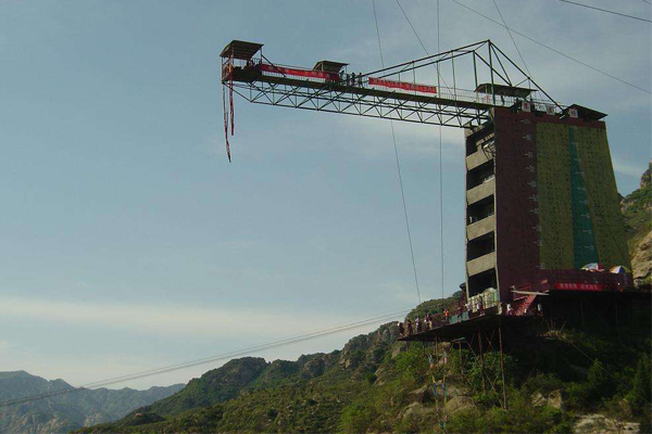 北京青龙峡蹦极台是国内最早的蹦极台,建成于1988年,高68米。蹦极台位于怀柔区怀北镇著名的古长城关口大水峪关附近,是集田园风光、山川秀色、青山绿谷、长城古貌为一体的旅游观光、度假休闲胜地。