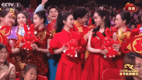 开场大合唱一人发了一只玩偶兔子,但是男女明星的摇兔子手法是完全不一样。女星这边都轻轻摇着兔子可爱又美丽,男星这边好像蹦迪气氛组,网友调侃还好是玩偶兔子,要不就晃晕了。