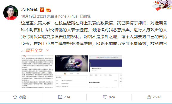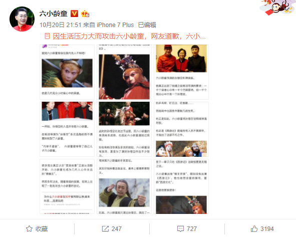 这个人不仅仅是抹黑六小龄童本人,更是对西游记加以恶搞,虽然后续有道歉,说自己是因为生活压力太大,但是已经很难挽回了,也是收到了六小龄童的律师信。