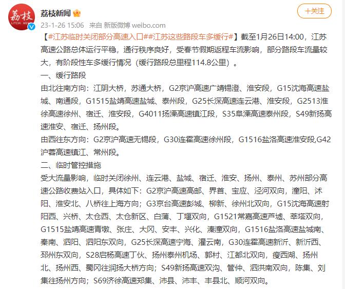 江苏临时关闭部分高速入口(江苏高速入口关闭情况)